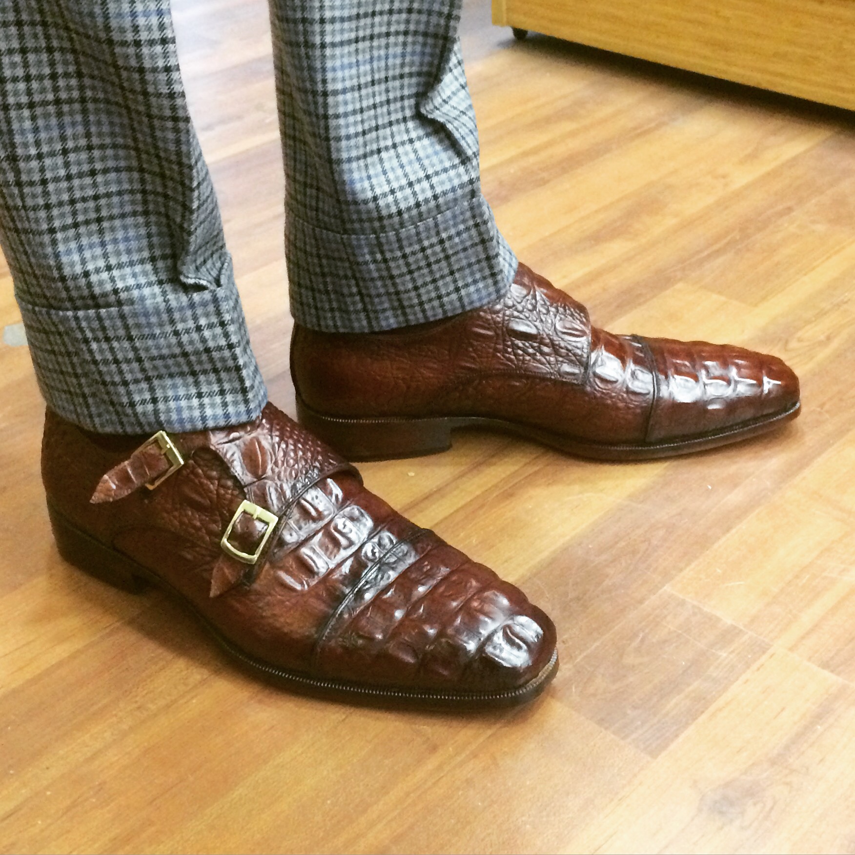Croc embossed brown monkstraps