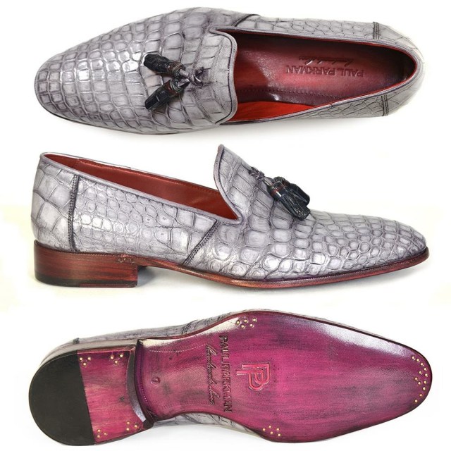 PAUL PARKMAN MEN’S GREY GENUINE CROCODILE TASSEL LOAFERS