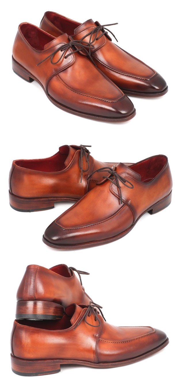 PAUL PARKMAN BROWN LEATHER APRON DERBY SHOES FOR MEN
