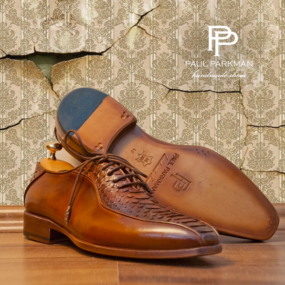 PAUL PARKMAN MEN’S BROWN GENUINE PYTHON & CALFSKIN BICYCLE TOE OXFORDS