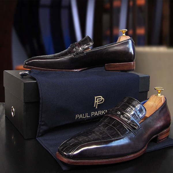 Paul Parkman Men’s Black Genuine Crocodile & Purple Calfskin Loafers