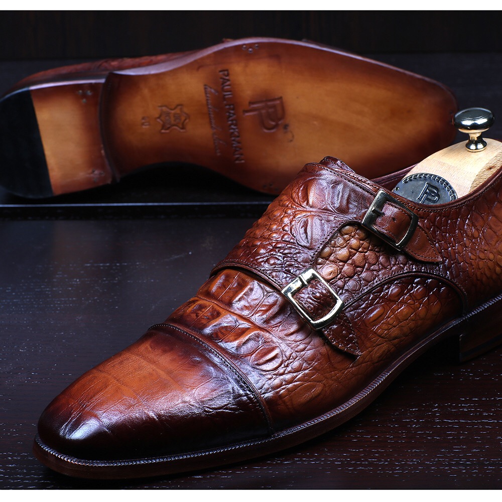 Paul Parkman Men’s Double Monkstrap Brown Crocodile Embossed Calfskin