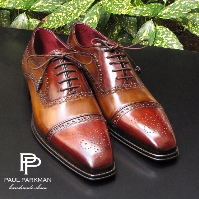 Paul Parkman Camel & Bordeaux Captoe Oxfords