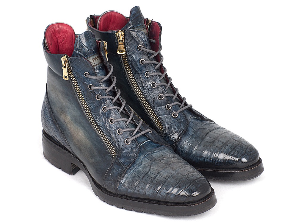 Paul Parkman Navy Genuine Crocodile & Calfskin Side Zipper Boots