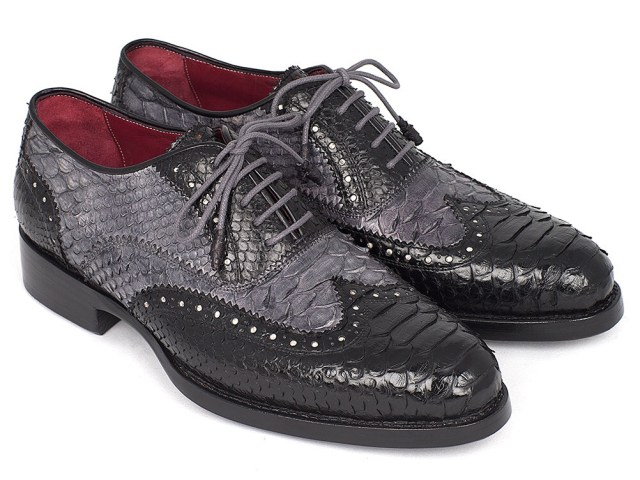 Paul Parkman Goodyear Welted Genuine Python Oxfords Black and Gray