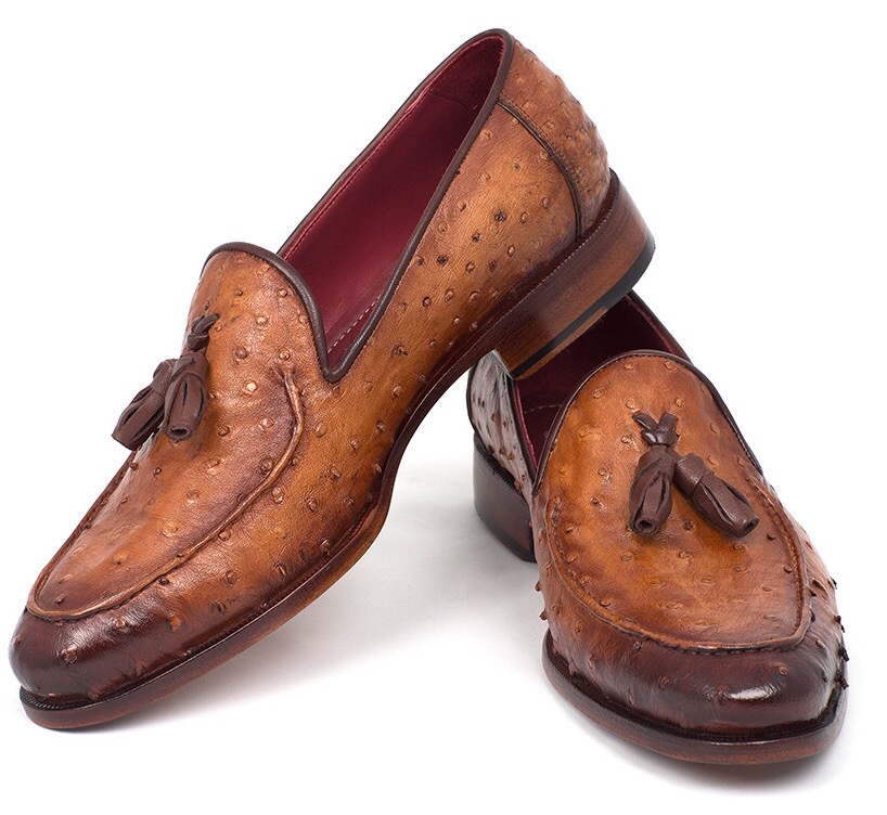 Paul Parkman Camel Brown Genuine Ostrich Tassel Loafers
