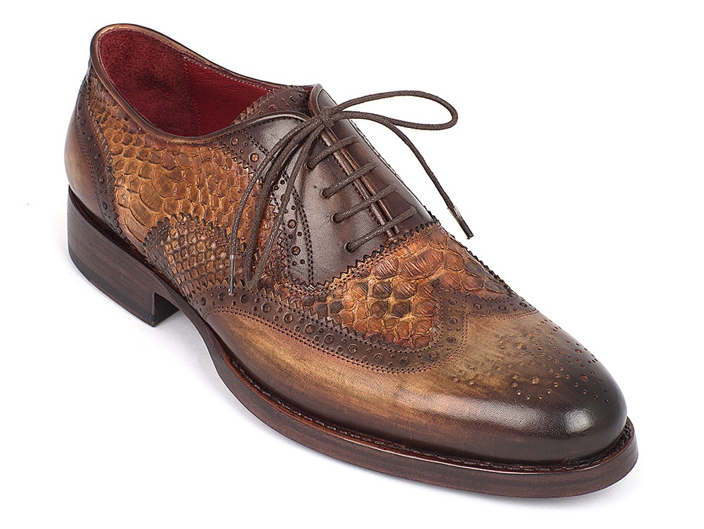 Paul Parkman Goodyear Welted Camel Genuine Python & Brown Calfskin Wingtip Oxfords
