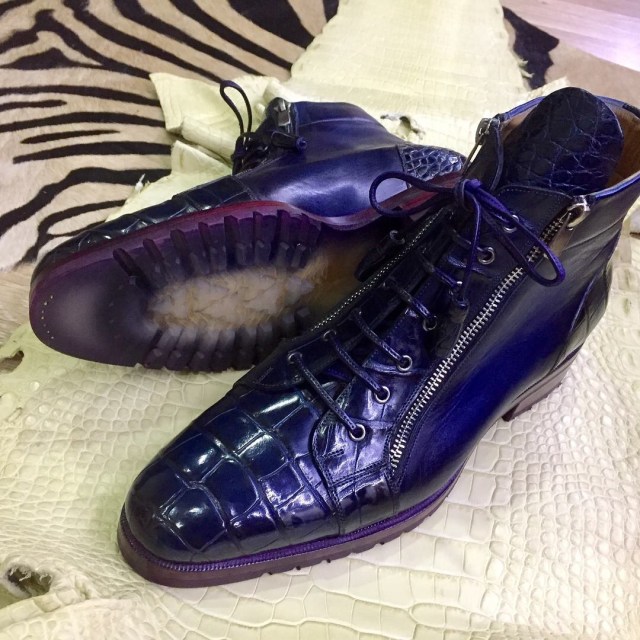 Paul Parkman Blue Genuine Crocodile & Calfskin Side Zipper Boots Website : http://www.paulparkman.com