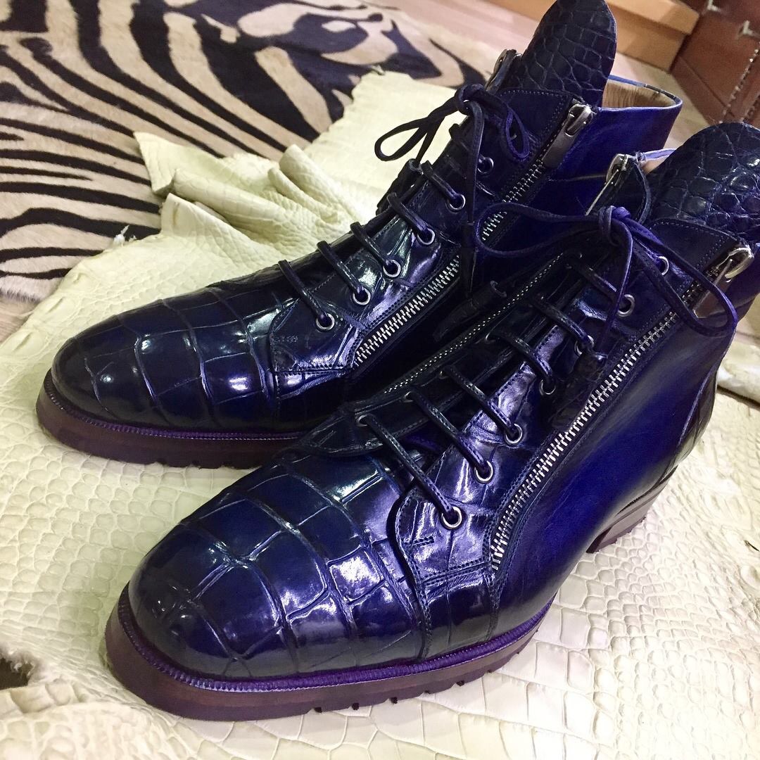 Paul Parkman Blue Genuine Crocodile & Calfskin Side Zipper Boots Website : http://www.paulparkman.com