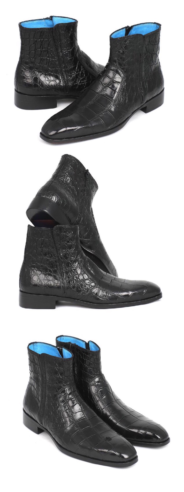 Paul Parkman Black Crocodile Side Zipper Boots