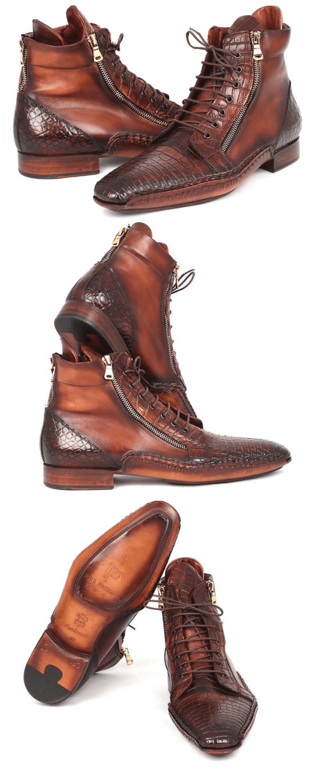 Paul Parkman Genuine Crocodile & Calfskin Handmade Zipper Boots