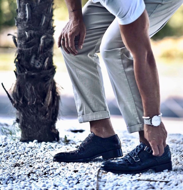 Paul Parkman Monkstraps Black Crocodile Embossed Calfskin
