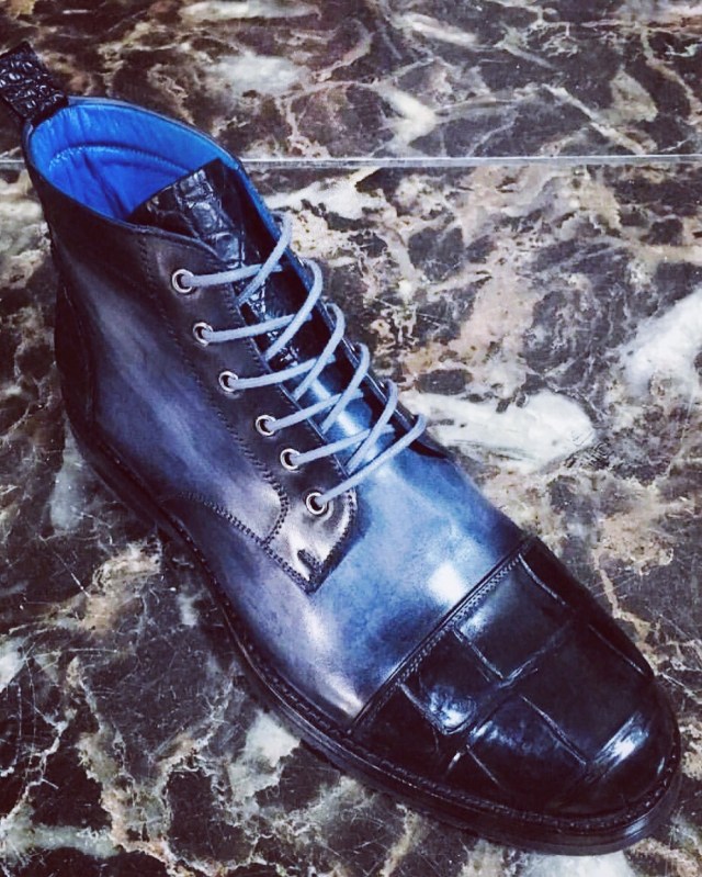 Paul Parkman Genuine Crocodile Captoe Boots Navy & Blue