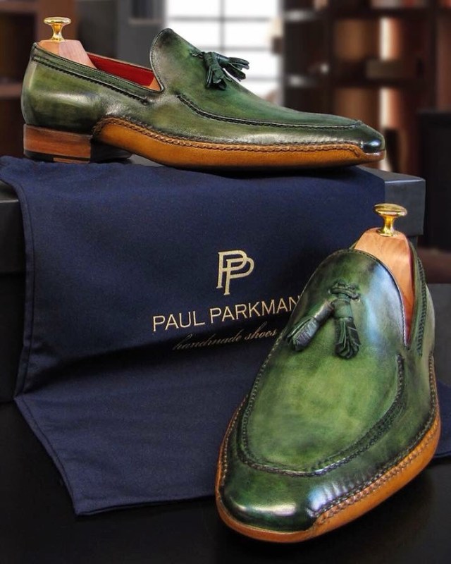 Paul Parkman Handcrafted Green Tassel Loafers For Men