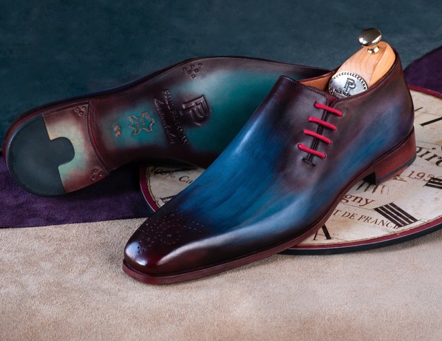 Paul Parkman Men’s Handmade Side Lacing Oxfords Blue & Bordeaux