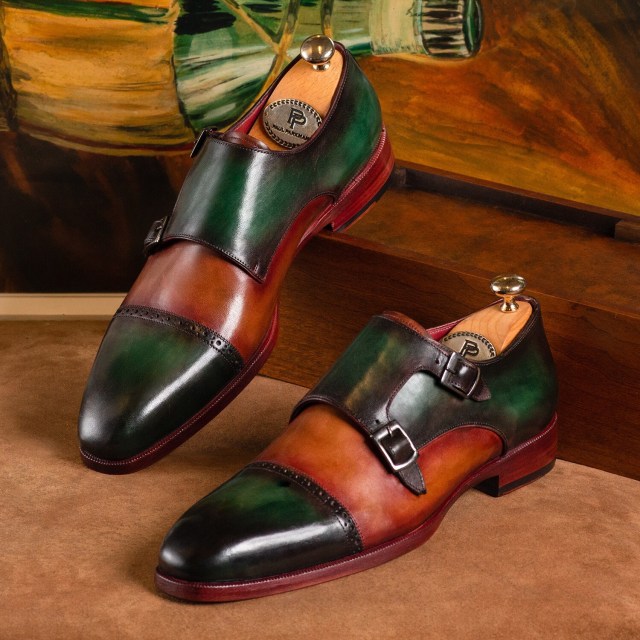 Paul Parkman Captoe Double Monkstraps Green & Camel