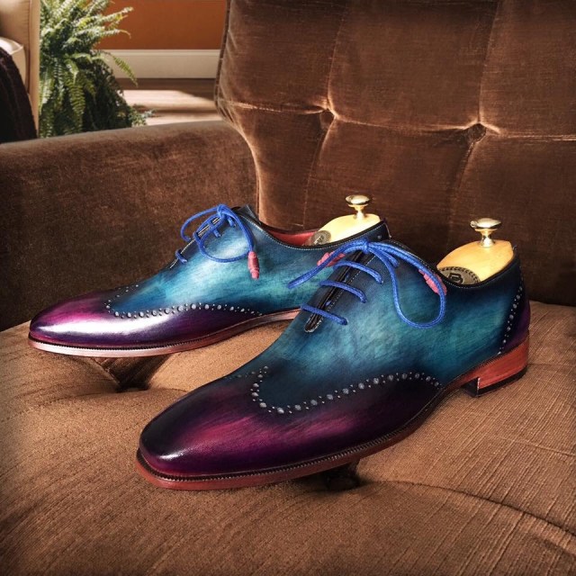 Paul Parkman Men’s Wingtip Oxfords Blue & Purple Hand Painted