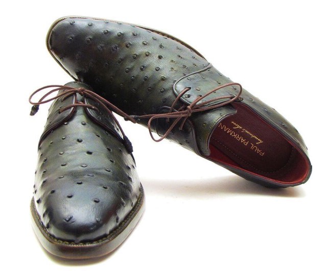 Paul Parkman Goodyear Welted Green Genuine Ostrich Derby Shoes