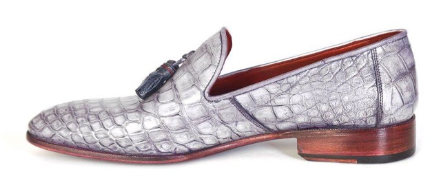Paul Parkman Men’s Grey Genuine Crocodile Tassel Loafers