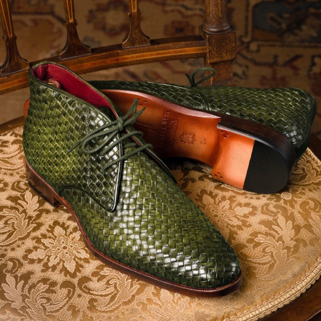 Paul Parkman Men’s Green Woven Leather Chukka Boots