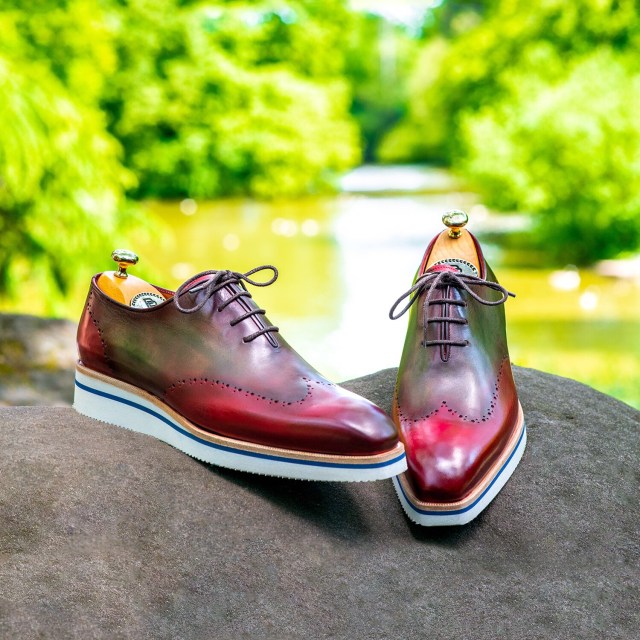 Paul Parkman Men’s Smart Casual Wingtip Oxfords Bordeaux & Green