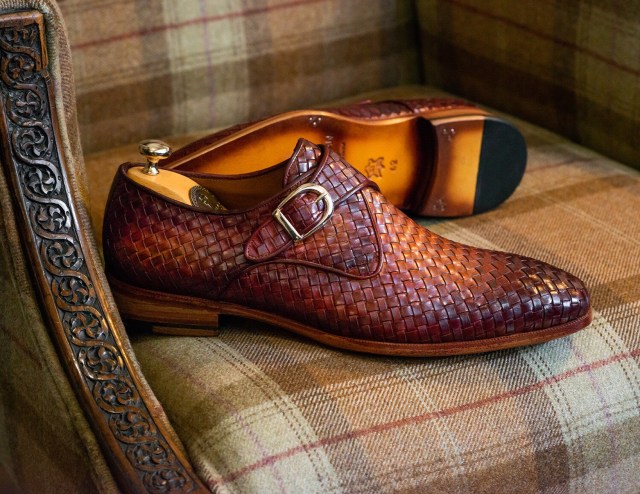 Paul Parkman Reddish Brown Woven Leather Single Monkstraps