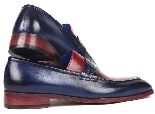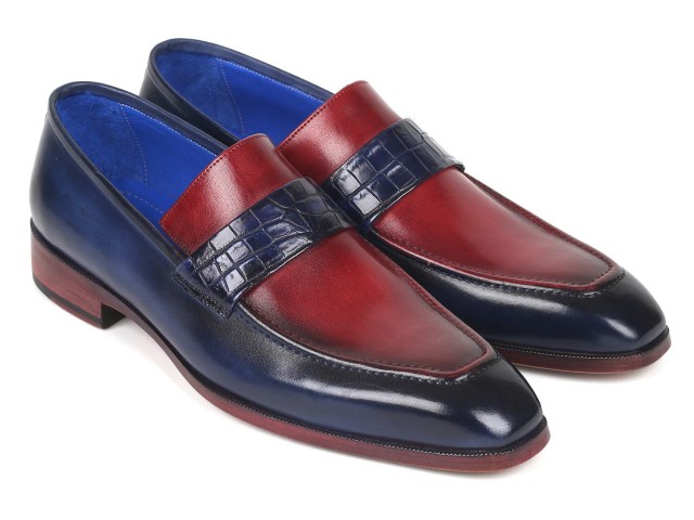Paul Parkman Blue Crocodile & Bordeaux Calfskin Loafers