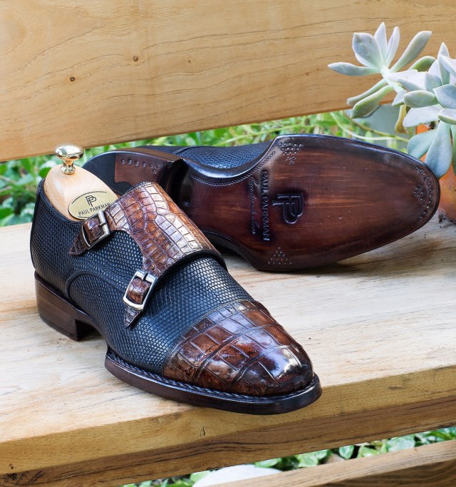Paul Parkman Genuine Crocodile & Iguana Double Monkstraps Navy Brown