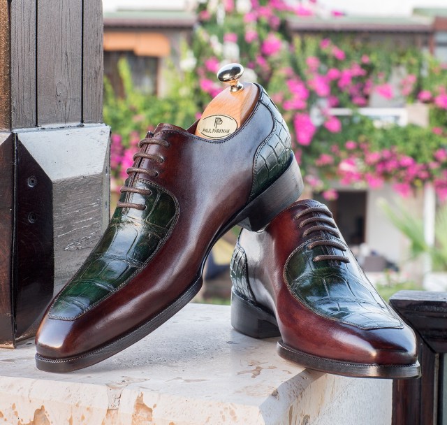 Paul Parkman Genuine Crocodile & Calfskin Oxfords Brown Green