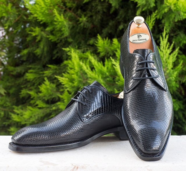 Paul Parkman Genuine Iguana Goodyear Welted Derby Shoes Black