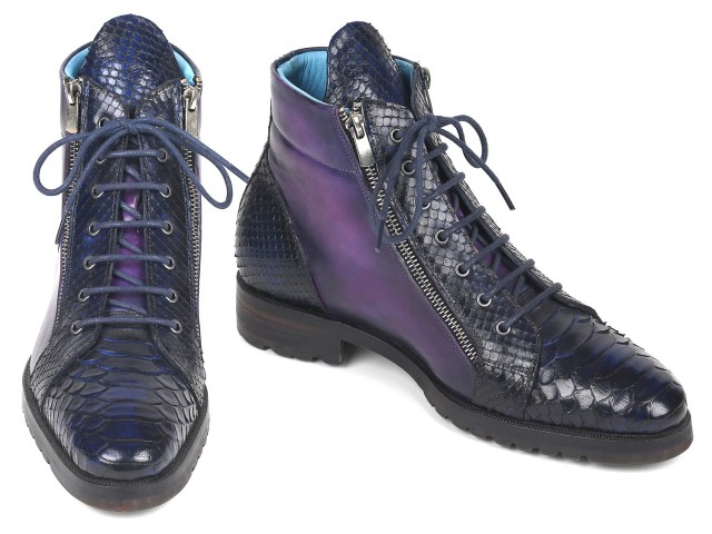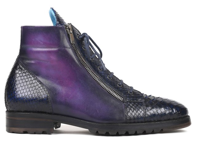 Paul Parkman Genuine Python & Calfskin Side Zipper Boots Navy Purple