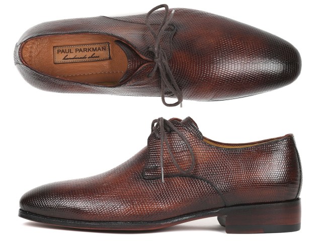 Paul Parkman Genuine Iguana Derby Shoes Brown