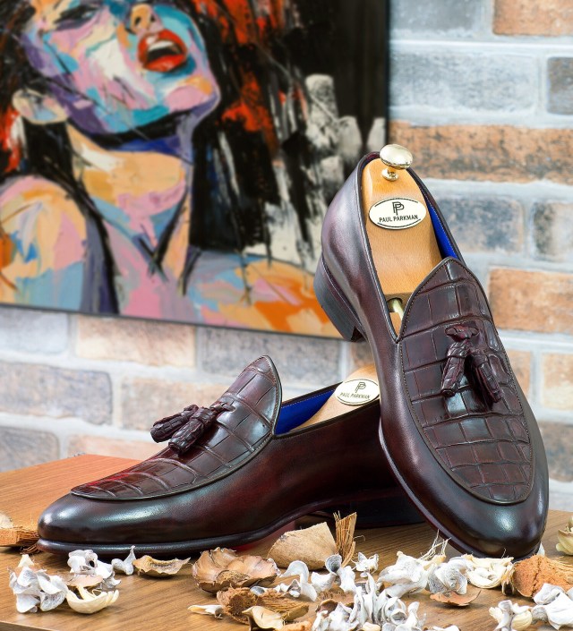 Paul Parkman Bordeaux Genuine Crocodile & Calfskin Tassel Loafers