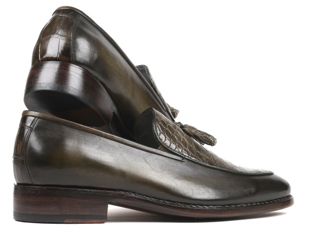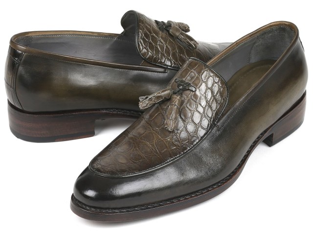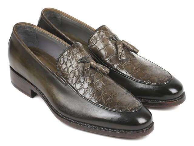 Paul Parkman Goodyear Welted Green Genuine Crocodile & Calfskin Tassel Loafers