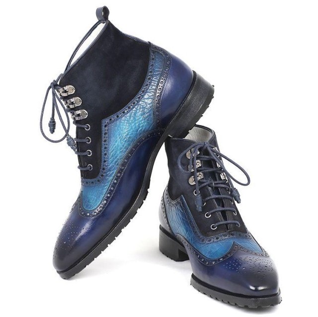 Paul Parkman Wingtip Boots Blue Suede & Leather. Check out http://www.paulparkman.com for more men’s boots. #paulparkman #leatherboots #mensboots #handmade #luxury #handmadeshoes #menshoes #shoeaddict #menstyle