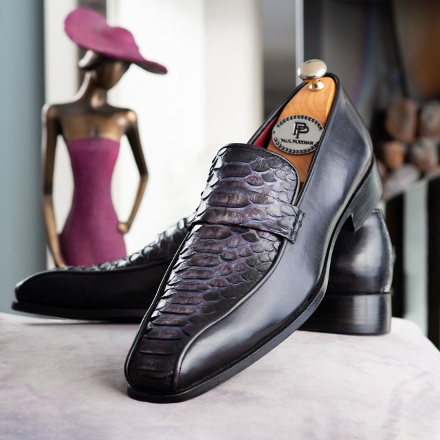 Paul Parkman Men’s Gray & Black Genuine Python and Calfskin Loafer