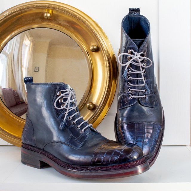 Paul Parkman Genuine Crocodile & Calfskin Captoe Boots Navy. Visit http://www.paulparkman.com and see more men’s leather boots.