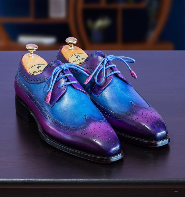 Paul Parkman Goodyear Welted Wingtip Derby Shoes Purple & Blue