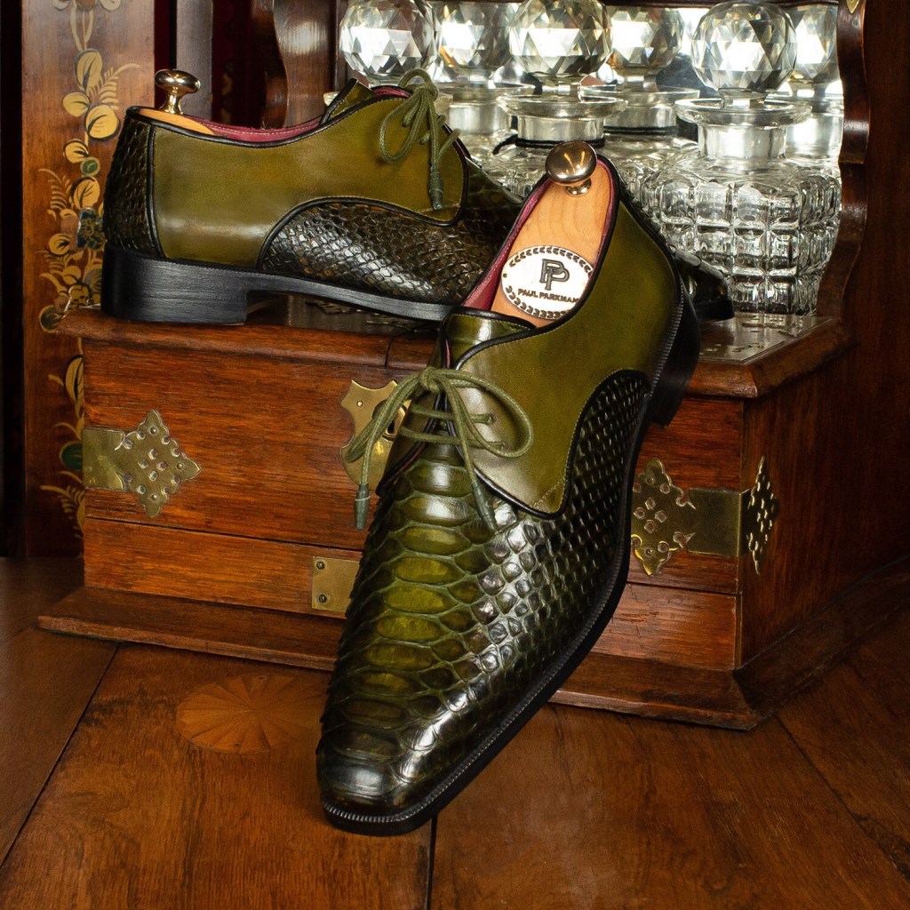 Paul Parkman Men’s Green Genuine Python & Calfskin Derby Shoes
