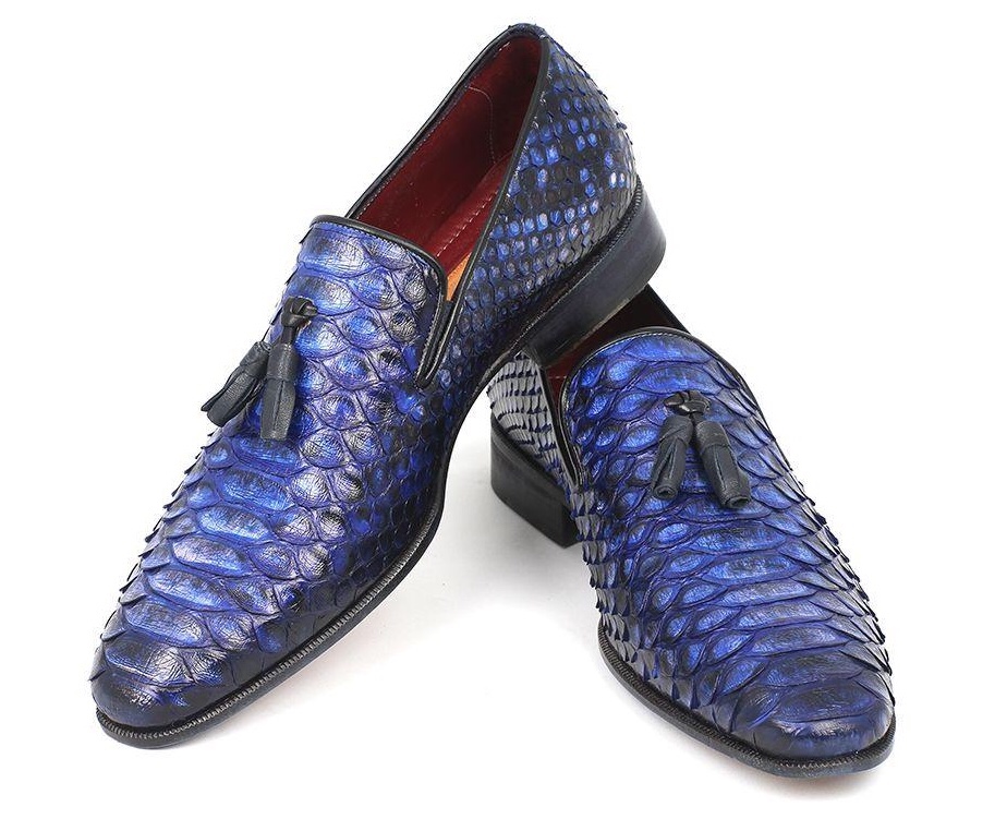 Paul Parkman Men’s Blue Genuine Python Tassel Loafers