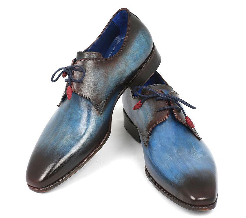 Paul Parkman Blue & Brown Hand-Painted Derby Shoes