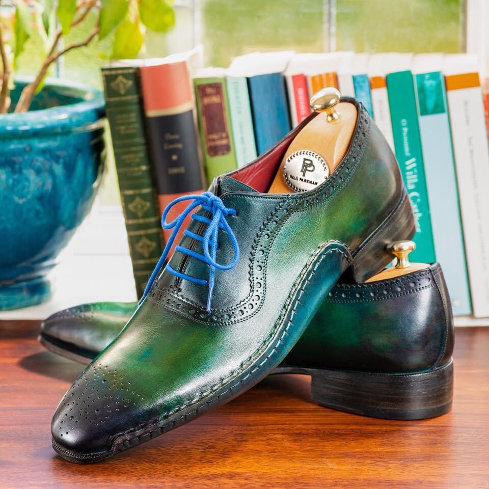 Paul Parkman Green & Purple Handmade Oxfords for Men