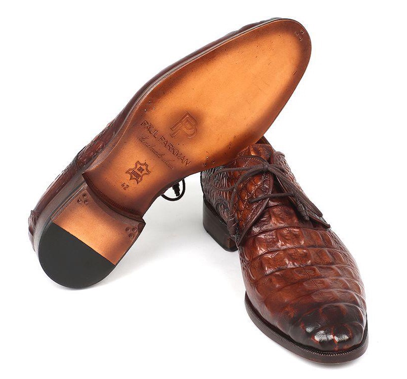 Paul Parkman Brown Crocodile Embossed Calfskin Derby Shoes