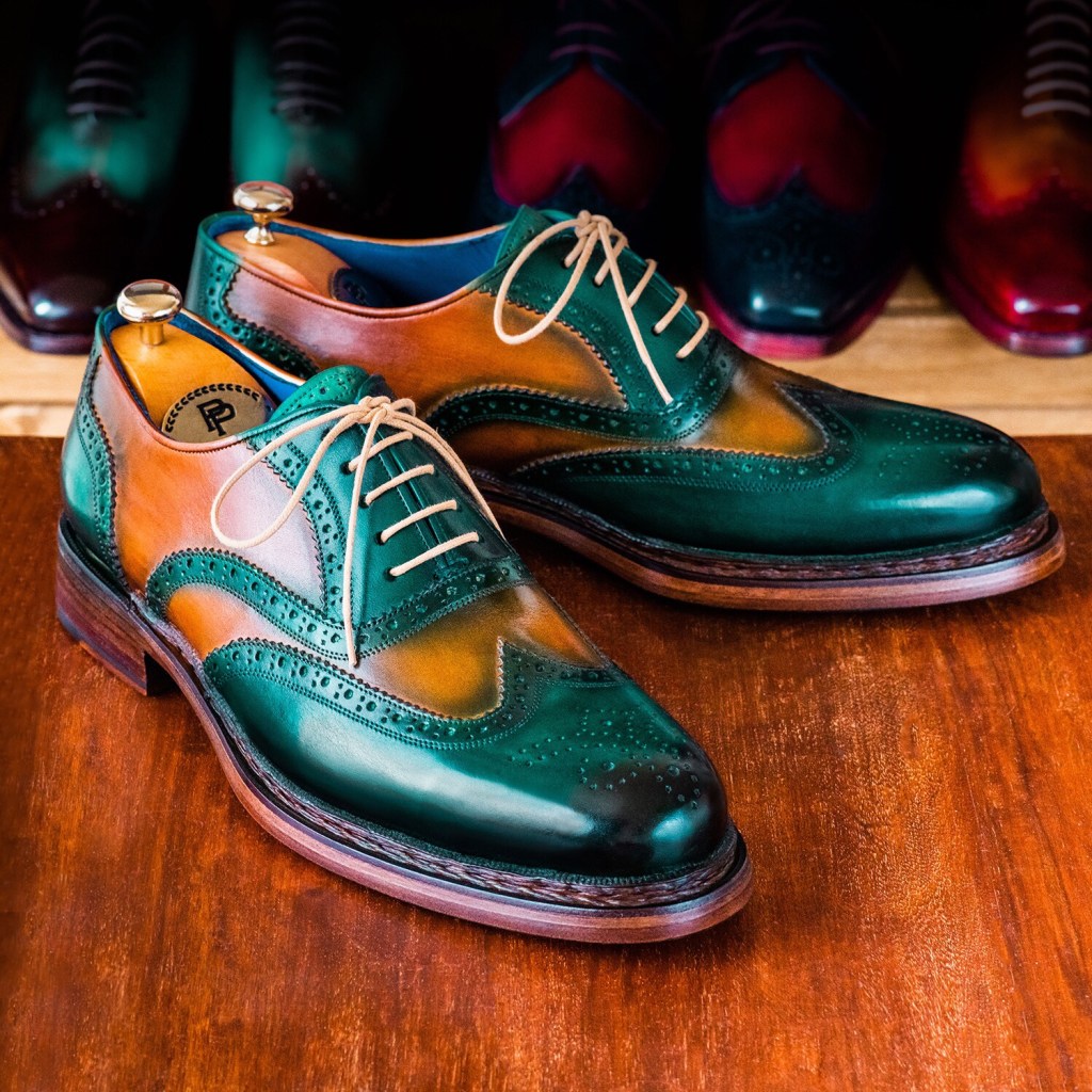 Paul Parkman Wingtip Oxfords Goodyear Welted Green & Tobacco