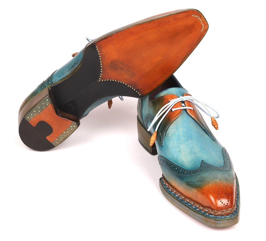Paul Parkman Norwegian Welted Wingtip Derby Shoes Turquoise & Tobacco