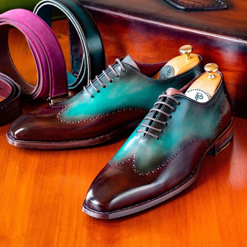Paul Parkman Goodyear Welted Wingtip Oxfords Brown & Turquoise