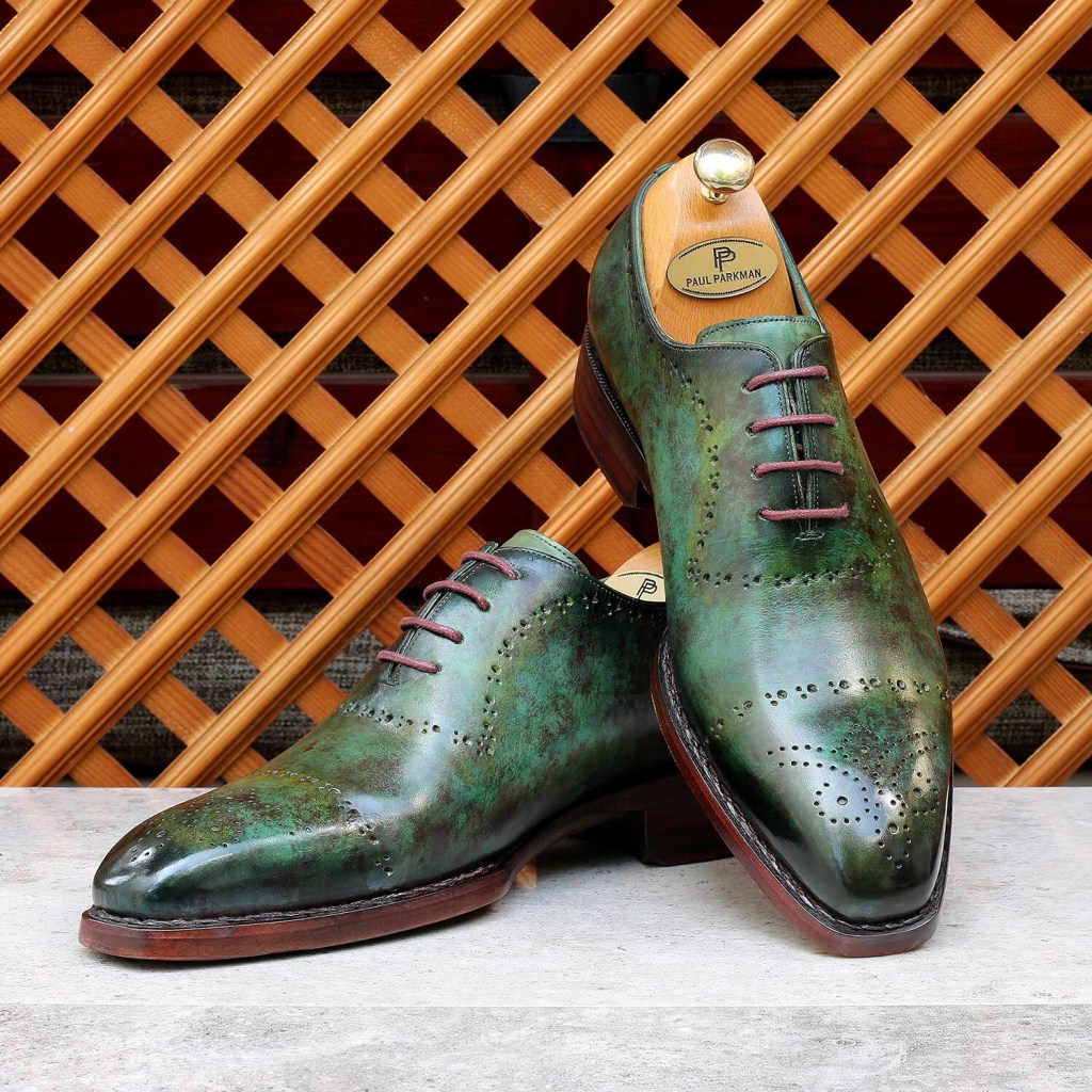 Paul Parkman Green Marble Patina Goodyear Welted Oxfords