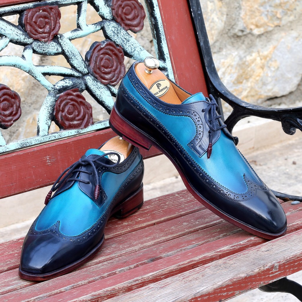 Paul Parkman Men’s Blue Dual Tone Wingtip Derby Shoes