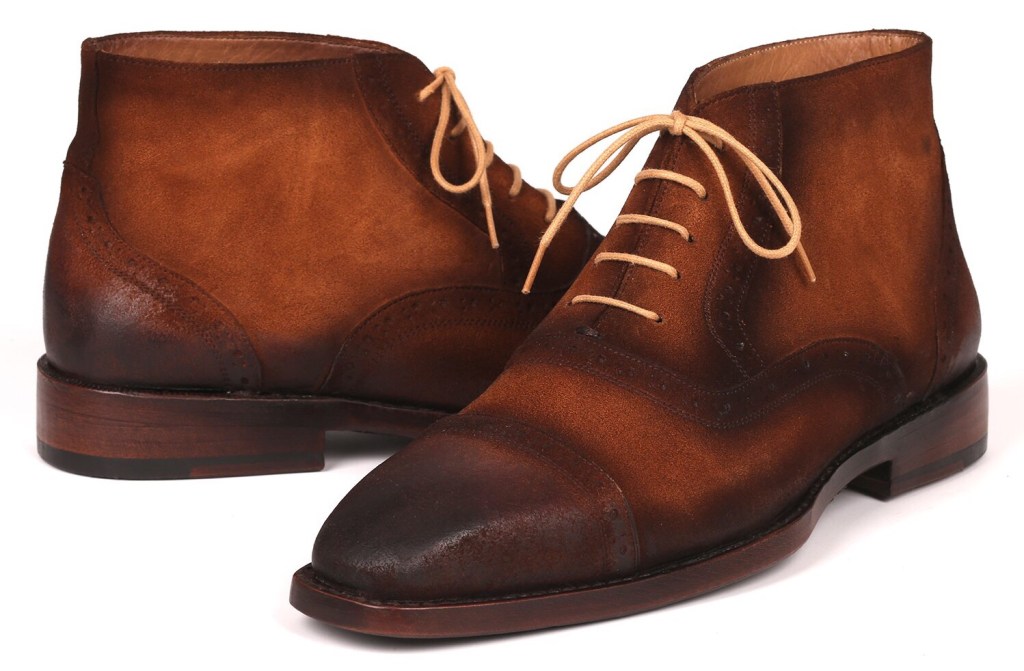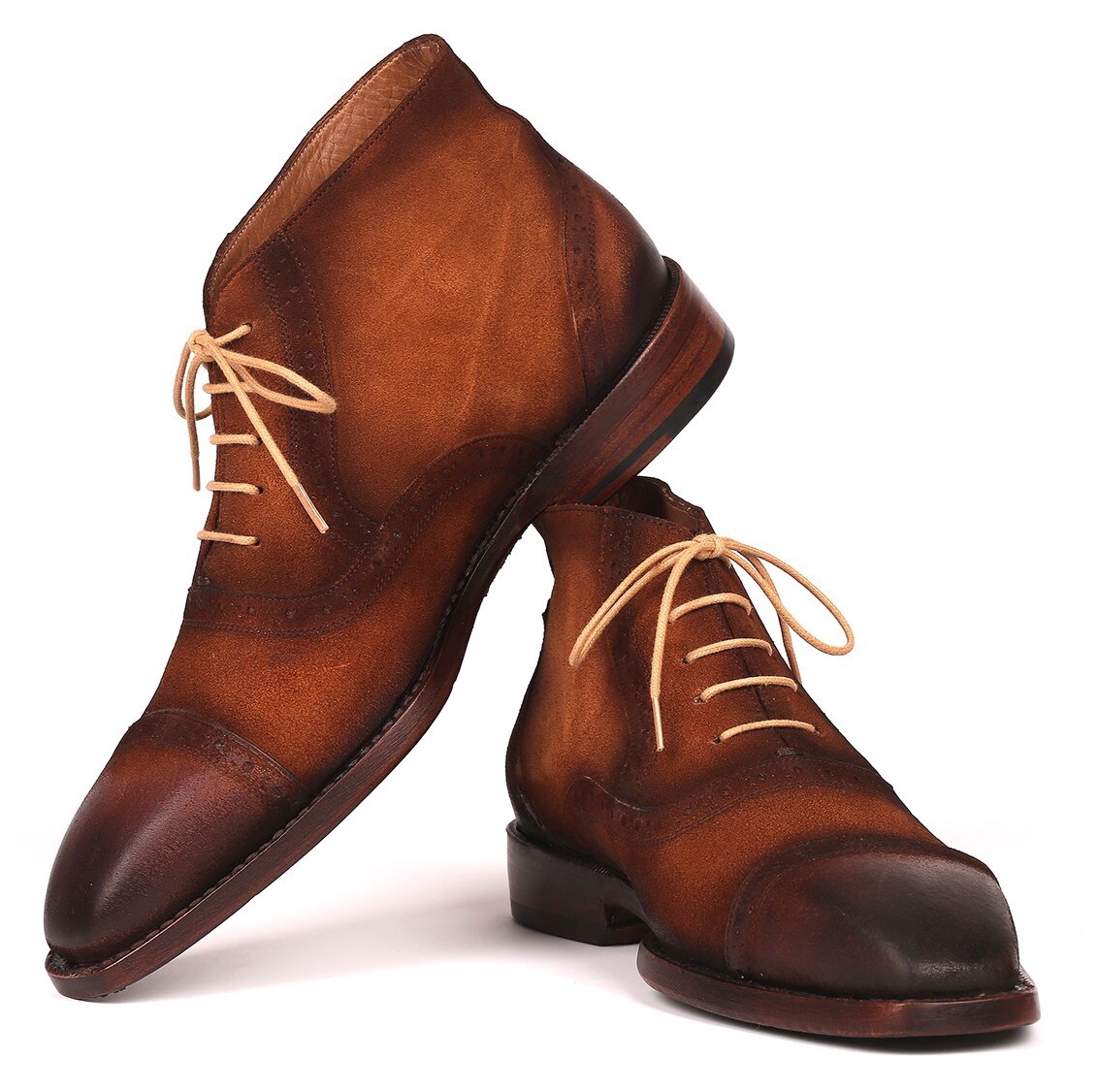 Paul Parkman Antique Suede Brown Cap Toe Ankle Boots