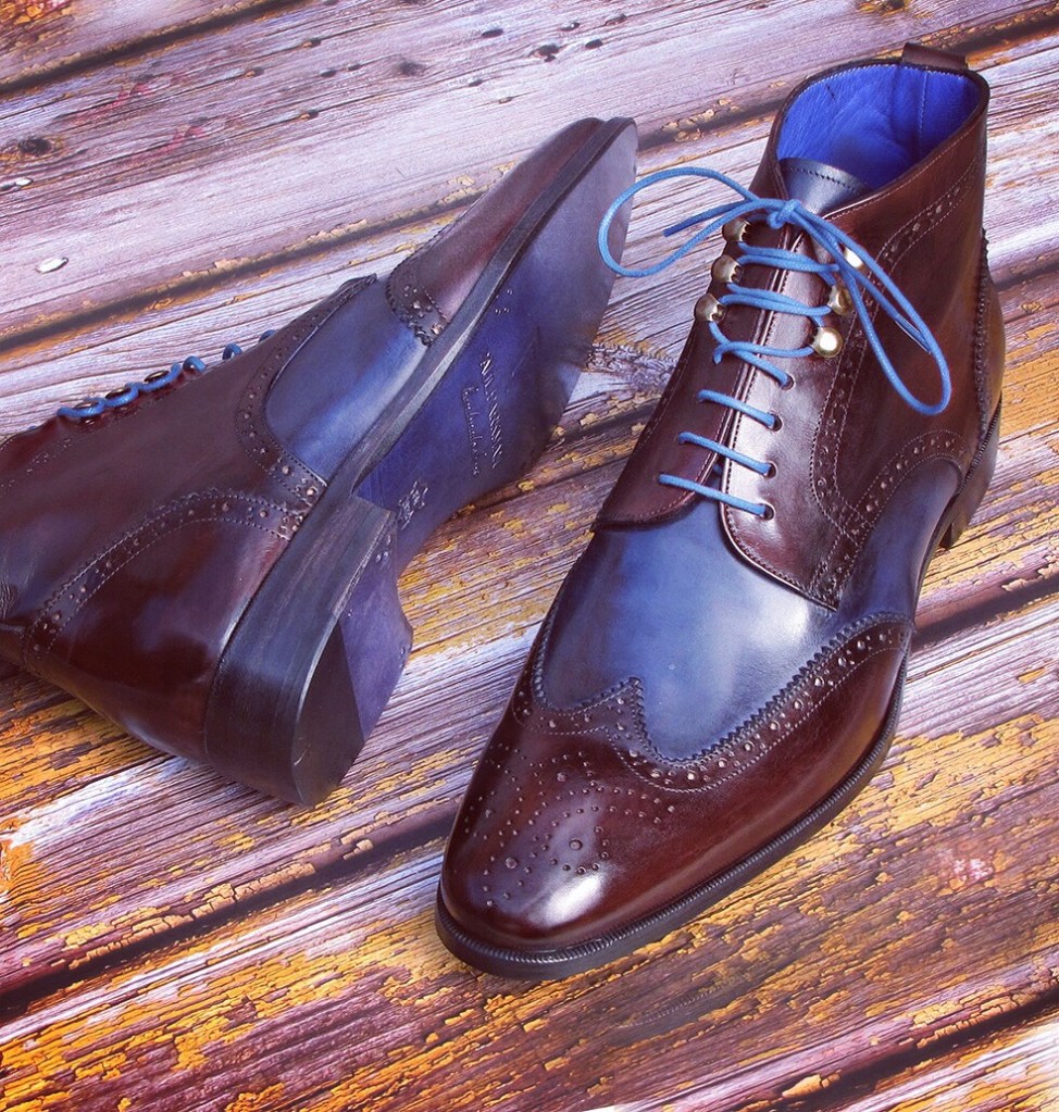 Paul Parkman Wingtip Ankle Boots Brown & Blue